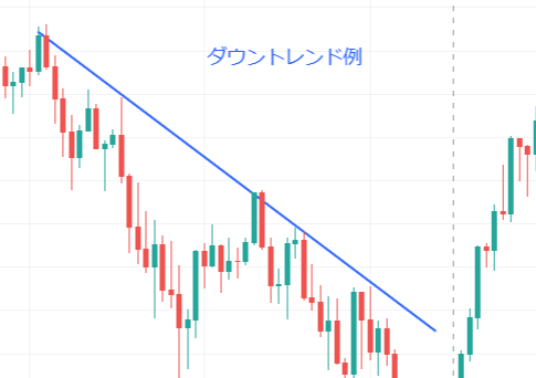 そのため、現在が下降(ダウントレンド)であれば、上昇に転じるサイン(PBやチャートパターンなど)を見つけたら、ここでダウントレンド中にロング(買い)でエントリーしていました。