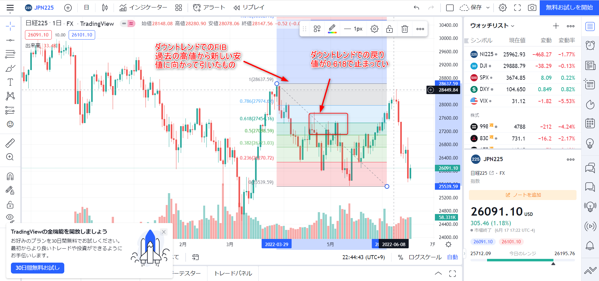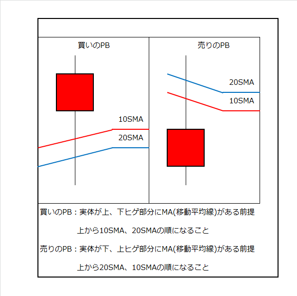 あとは適宜使っていきますが、PB(ピンバー)、FIB(フィボナッチリトレースメント)、トレンドラインを使っていきます。