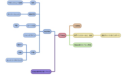 検証でチャートパターン、FIB、MAといったインジケータや考え方でエントリーポイントと結果を記録という流れを続け、自身のトレードルールを構築していきました。