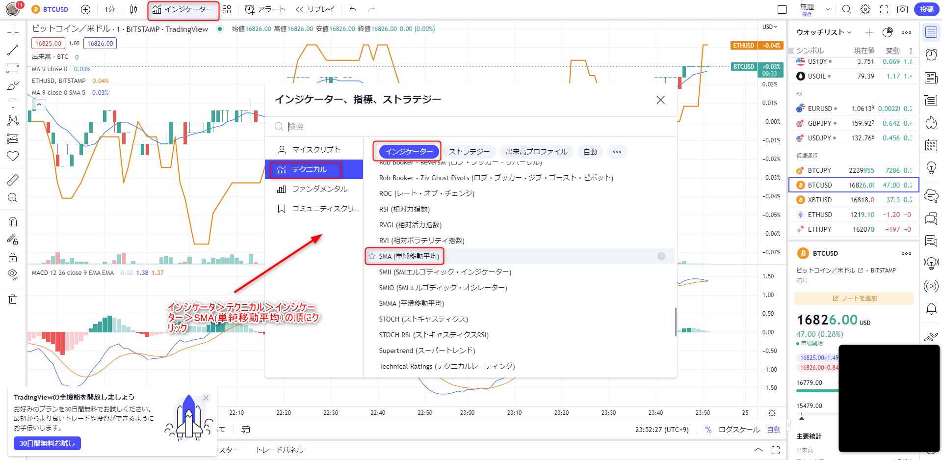 3.トレンドライン、FIB、MAなどを使いエントリータイミングを図り、利確ポイントも決定