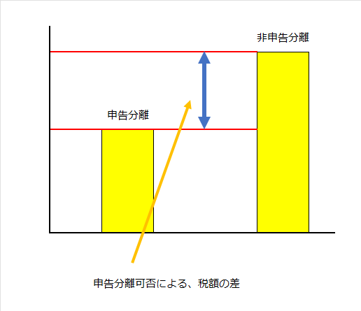 →ほかの所得と分離(区別)して税額を計算する方式のこと。計算上の所得が分離することで少なくなるので結果、税額も少なくなります。