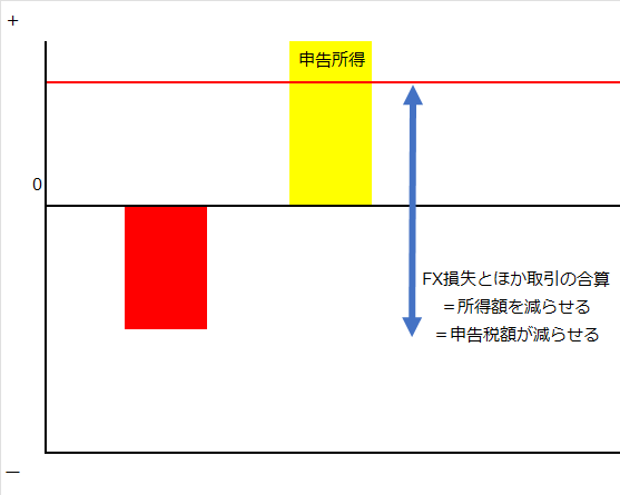 →FX損失が出た場合、ほかの取引利益を通算することで申告所得が少なくなり、結果、税金計算の結果も少なく済みます。